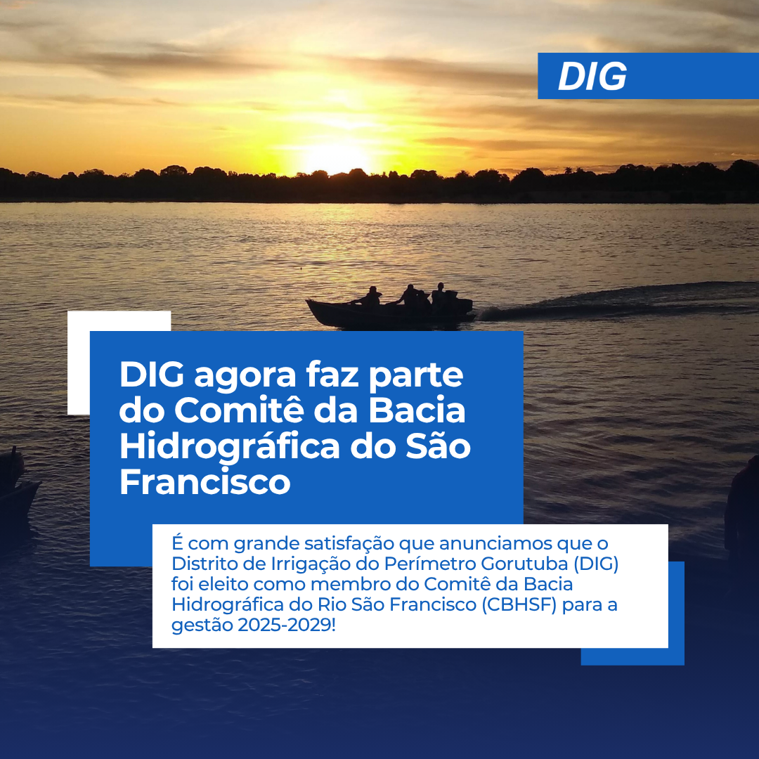 É com grande satisfação que anunciamos que o Distrito de Irrigação Gorutuba (DIG) foi eleito como membro do Comitê da Bacia Hidrográfica do Rio São Francisco (CBHSF) para a gestão 2025-2029!