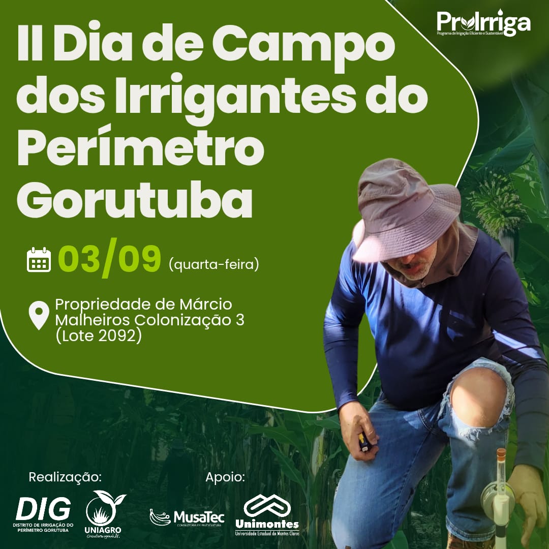 DIG divulga edital com critérios e condições para o fornecimento de água no Perímetro Irrigado Gorutuba.